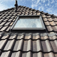 Volledige dakrenovatie van 5 wooncomplexen met rode Tenorpannen Ediliance alsook isolatie van het volledige complex en het plaatsen van nieuwe Veluxramen.
